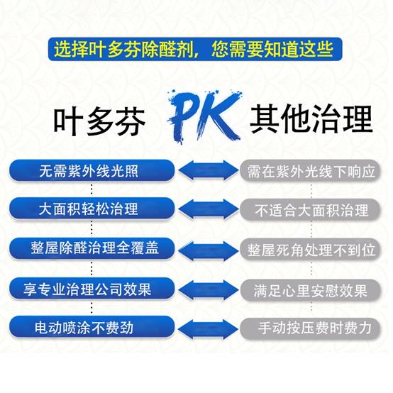净化原理:叶多芬采用植物提取成分,是专业除甲醛公司常用的工程装产品。它具备精准找到污染源并进行判断的能力,能够根据不同的装修材质,采用相应的施工工艺和专项产品,实施针对性的治理方案,从而迅速有效地清除甲醛。