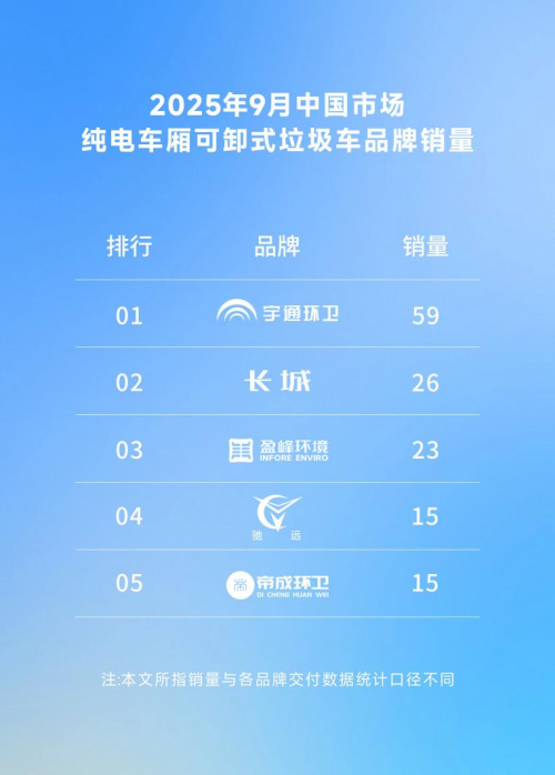 近日,新能源环卫车细分领域 9月销量数据公布,在纯电车厢可卸式垃圾车赛道,宇通环卫以59辆的销量稳居榜首,长城、盈峰环境分位列第二、三位。从销量分布来看,宇通环卫在细分领域建立起了显著领先优势,单月销量超过第二、三名之和。