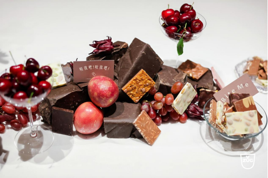 (瑞族V-ZUG携手瑞士巧克力品牌 Läderach 一起带来的「可食用餐桌(Bite-me Table)」)