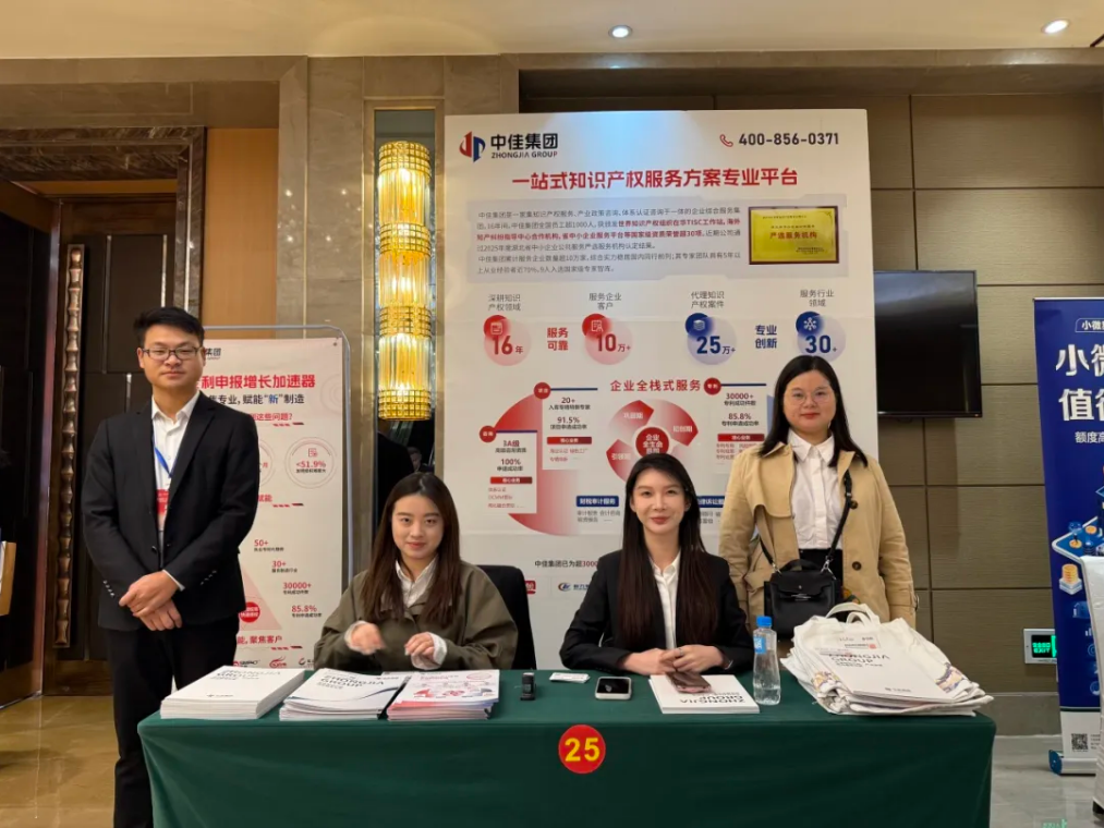 活动期间,中佳集团展位吸引了众多参会企业代表驻足交流。展台以“知识产权全链条服务”为核心,由专业顾问团队提供一对一咨询,通过系统讲解与案例解析,全面展示中佳在知识产权战略布局、专利商标申请、科技项目申报及产业政策匹配等方面的综合服务能力。