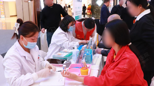 在血压测量区,医务人员耐心地为每一位参与者测量血压,并详细记录数据。对于血压异常者,医务人员会给予相应的健康指导,建议他们进一步到医院进行详细检查。血糖检测区同样忙碌,医务人员通过快速检测仪为市民测量血糖,并提醒糖尿病患者注意饮食控制和定期监测。