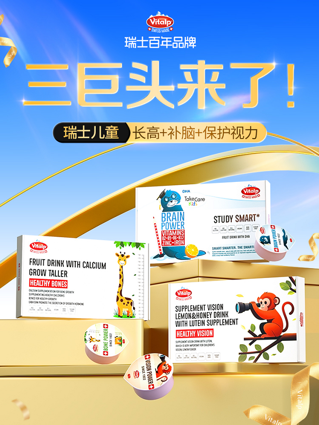 其中的瑞士VITALP茁乐高补充固体冲饮作为主打的儿童长高系列产品之一 :