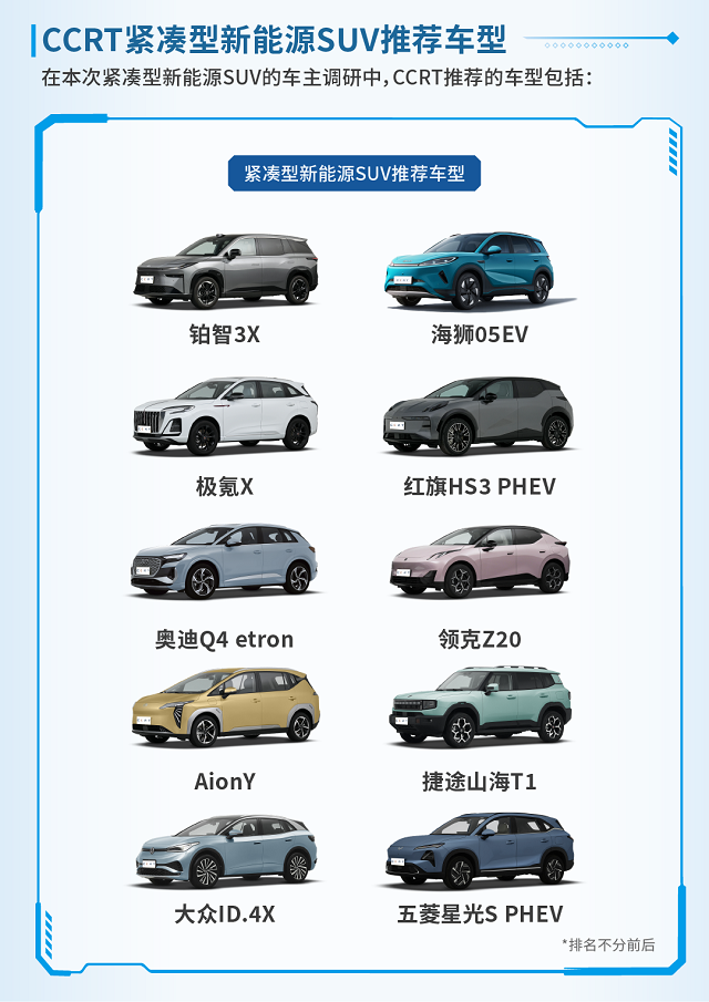 数据来源:中国汽车消费者研究与评价(CCRT)2025新能源紧凑型SUV市场调研