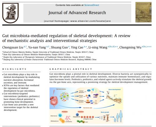 2025年7月,国际权威期刊《Journal of Advanced Research》发表重磅综述《Gut microbiota-mediated regulation of skeletal development: A review of mechanistic analysis and interventional strategies》,系统梳理全球肠道菌群与儿童骨骼发育研究成果。