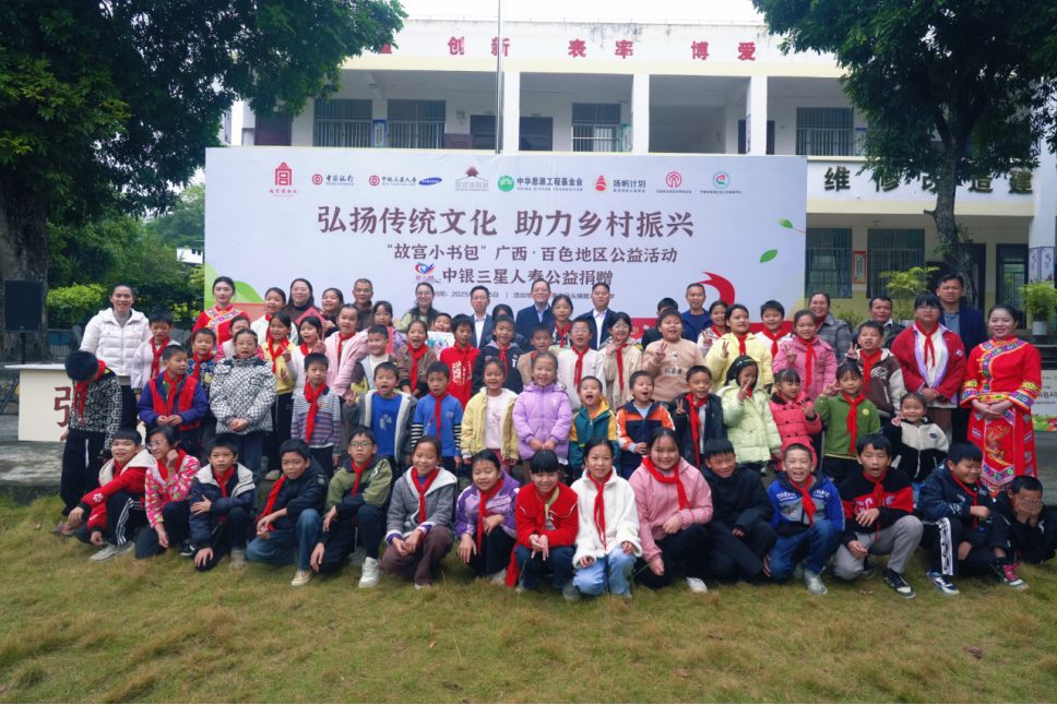 2025年12月5日,“故宫小书包”公益捐赠仪式在“百色起义”革命精神的发源地——广西百色顺利举行。中银三星人寿携手故宫博物院、中华思源工程基金会、新浪扬帆公益基金,向百色市40所学校捐赠40套“故宫小书包”,为革命老区的青少年送去文化力量。民建百色市委会、平果市文学艺术界联合会、平果王阳明研究会、平果市幸福社会工作中心等单位一同参与此次捐赠仪式。