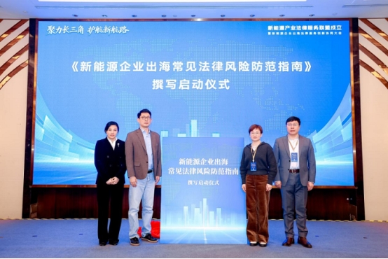 随后,大会举行了新能源产业法律服务联盟揭牌仪式、新能源产业法律服务联盟成立仪式、首批理事单位授予仪式、《新能源企业出海常见法律风险防范指南》撰写启动仪式。