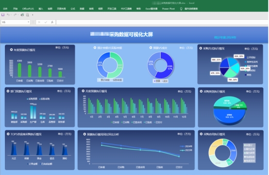 在采购管理层面,平台将《采购订单》《采购订单跟进表》《成本预算表》《采购统计分析表》等数据统一整合,通过采购数据可视化大屏,对预算执行过程进行持续跟踪。年度预算执行情况、预算申报与实际成交对比、采购方式执行比例、部门与类别预算完成度以及预算执行的环比变化,均可实时呈现。采购管理由事后核算转向过程管控,帮助企业提前识别预算偏差和成本风险,提升采购决策的透明度和可控性。
