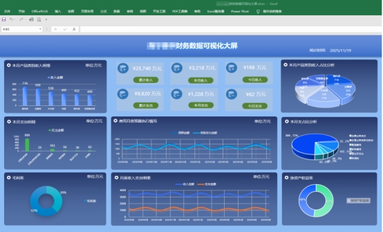 在财务管理方面,平台整合《月度收入明细表》《月度支出明细表》《月度费用预算表》《利润核算表》等数据,构建统一的财务数据可视化大屏。系统能够实时呈现产品收入结构、支出构成、费用预算执行情况以及毛利率、净资产收益率等关键指标。财务分析由事后汇总转向实时监控,使财务部门能够更早识别经营风险,为管理层提供更具前瞻性的决策支持。