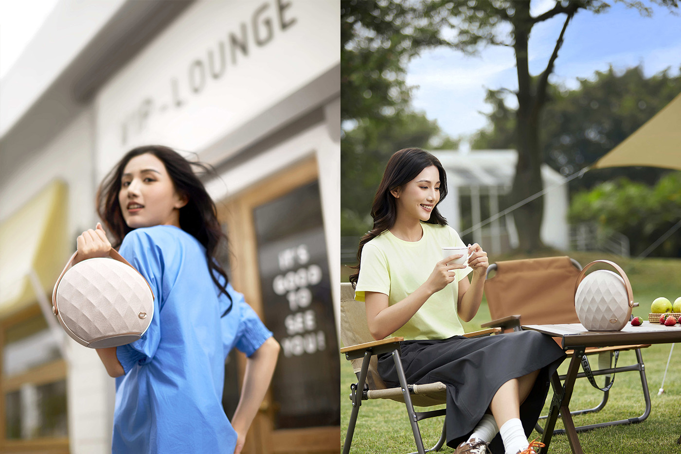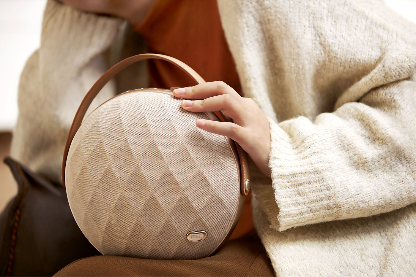 外层采用透声率超90%的菱格纹声学网布,触感细腻耐脏;更关键的是,它配备意大利进口真皮手提带,柔软亲肤、质感高级,拎起即可融入通勤、街拍、野餐、下午茶等多元生活场景,成为OOTD中的点睛之笔。仅1.85kg的轻量化设计,让音乐真正实现“拎起就走”, 轻盈无负担让高品质音乐轻松走出家门,伴随你探索生活的每一寸半径。