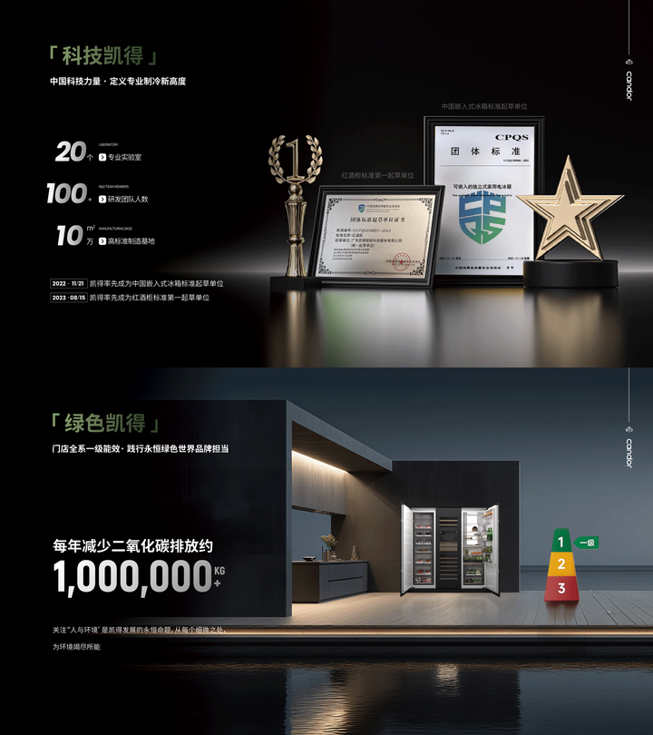 自创立以来,凯得智能聚焦红酒储藏核心需求,构建了家用高端藏柜、商用智能酒窖、定制化储藏系统的完整产品矩阵。以技术前瞻突破行业痛点,本次获奖的“恒温恒湿红酒储藏柜”作为技术标杆,核心性能优质,融入独立控温、宽域精准调节、温湿独立运行、智能物联温控等功能,既精准模拟葡萄酒适宜环境,更实现储酒环境从一次性设定到可持续感知管理的升级。