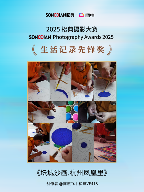 与此同时,获奖作品《丁达尔光下的人》、《快乐田园女孩》以及《坛城沙画·杭州凤凰里》都出自松典VE418。这款相机的实力根植于其1/1.4英寸的大底CMOS传感器,更大的感光面积与光圈,直接带来了更强的进光量与更优异的弱光画质。这使得《丁达尔光下的人》中对复杂光影氛围的细腻捕捉成为可能,画面中光的质感得到了真实还原。而VE418作为“2025年度卓越国产卡片机”,其扎实的成像基础和对色彩的精准驾驭,很好地向我们展现出《快乐田园女孩》中鲜活饱满的色彩。