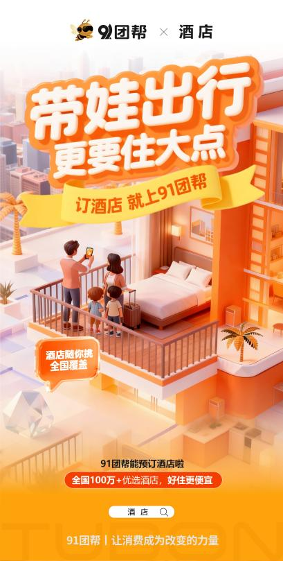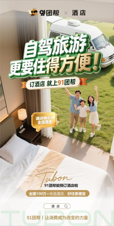还在为订酒店反复比价、纠结平台?现在,91团帮也能轻松订酒店了!91团帮整合超100万优质酒店资源,覆盖全国热门城市、景区及小众目的地,无论是亲子出行、商务差旅、自驾游,还是家人欢聚,都能在91团帮找到“住得好、花得值”的性价比之选!