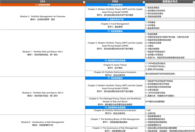 (图:CFA L1与FRM P1部分重合考点)