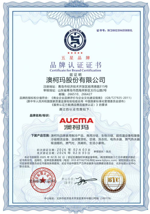 - 澳柯玛再获“五星级售后服务、五星级品牌”双五星认证2026-02-27
