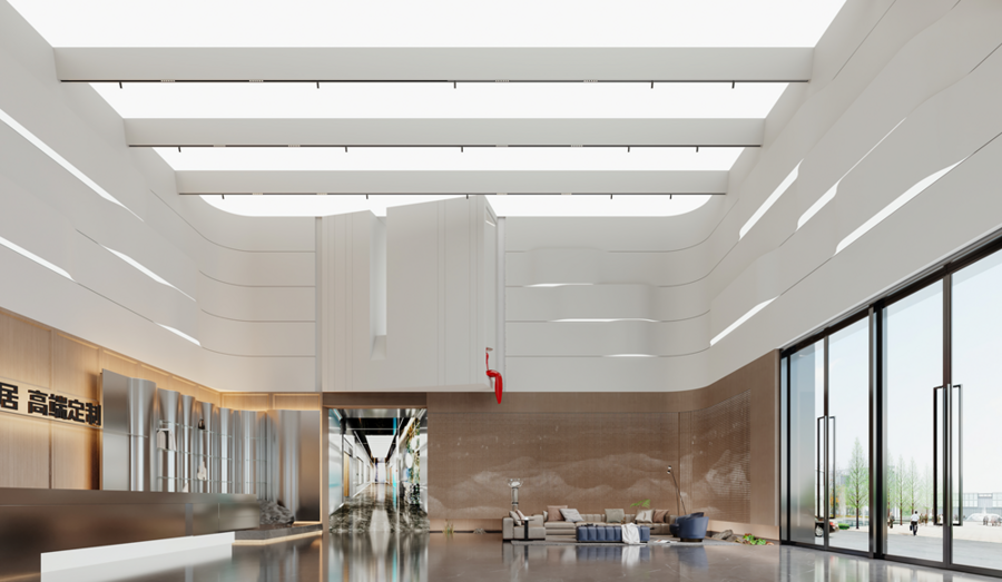 金属集成吊顶搭配铝制天花、造型顶线,防潮防火的同时,与金属护墙板形成视觉呼应,让顶面与墙面的过渡自然流畅;
