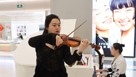 这场由哈尔滨演艺影视集团指导、哈尔滨歌剧院倾情演绎的冰雪季专场演出,于凯德广场・学府温情上演,为春寒料峭的冰城,注入了一抹温暖而浪漫的艺术亮色。步入凯德广场・学府的室内空间,往日商业空间的喧闹被悠扬婉转的琴声悄然替代,往来的市民与游客循声而至,在流转的旋律里,邂逅了一场别开生面的艺术之旅。哈尔滨歌剧院钢琴演奏员王羽西指尖在琴键上轻盈跃动,与小提琴演奏员刘敬言的琴弓默契交织,一曲经典的《一步之遥》缓缓奏响,瞬间将烟火气十足的商业空间,升华为氛围感拉满的高雅音乐殿堂,不少正在选购商品的市民纷纷停下脚步,静静聆听这份突如其来的美好。