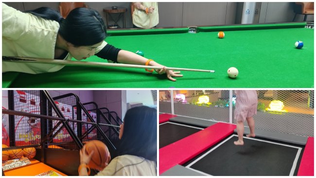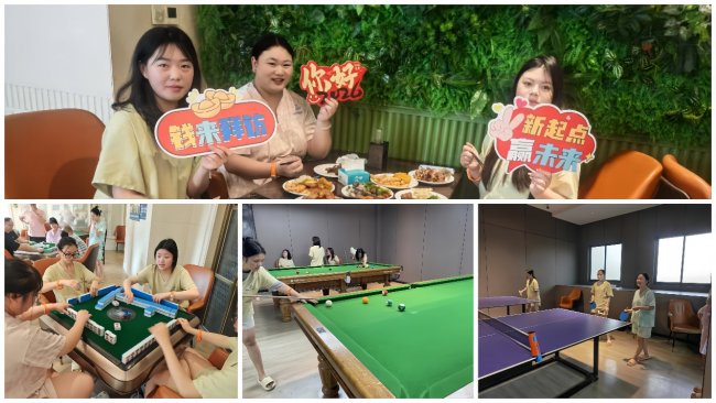 台球桌边,则是另一番从容雅致的景致。同仁们褪去工作中的严谨与忙碌,多了几分休闲与淡然,俯身、瞄准、推杆,动作沉稳专注,目光澄澈坚定。手法娴熟者,一杆入袋,引来阵阵赞叹,眉眼间藏着从容与自信;新手们在伙伴的耐心指导下慢慢摸索,一点点进步,相互切磋技艺、调侃打趣,欢声笑语萦绕耳畔,小小的台球桌,不仅承载着休闲的乐趣,更成为了增进彼此了解、凝聚团队情谊的温馨桥梁,让每一份相处,都充满温柔与欢喜。
