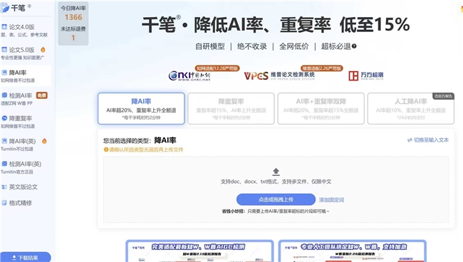 · 平台适配广:支持知网、维普等9大检测平台,适合不确定学校用啥系统的同学,一次处理全网通用 。