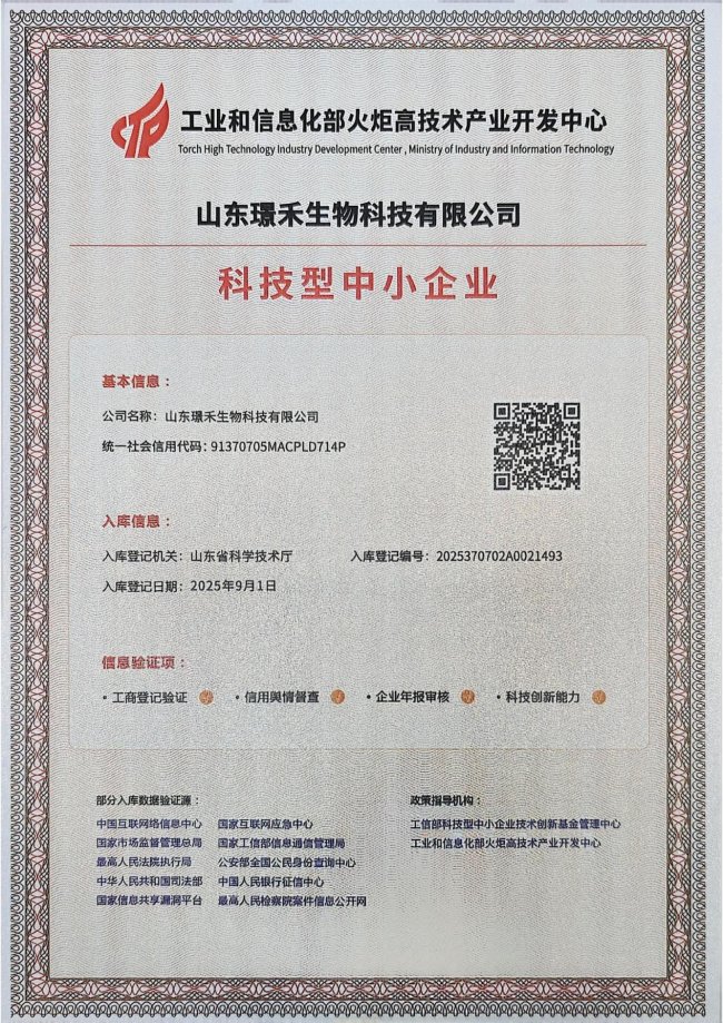 - 喜报!山东璟禾生物科技有限公司入选山东省2025年第3批科技型中小企业