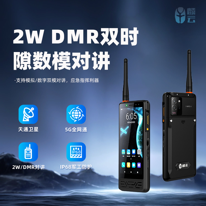 首先,该终端搭载国产展锐UIS7885芯片平台,8核2.7GHz处理器,配备8GB+256GB、12GB+256GB内存组合,可运行安卓13.0操作系统或国产操作系统。在通信能力上,产品融合天通卫星通信/低轨卫星通信、DMR对讲/RTK高精度、北斗三号短报文功能。地面网络方面,支持5G全网通及广电700MHz频段。
