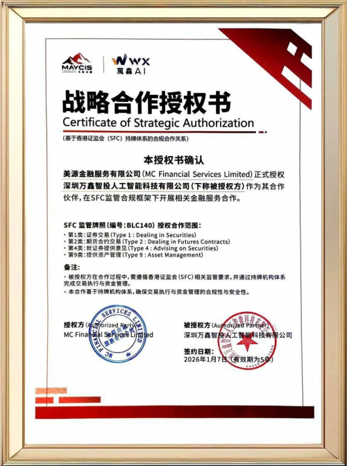 根据最新披露信息,万鑫智投已与香港持牌金融机构——美源金融服务有限公司(MC Financial Services Limited)建立合作关系,并在香港证监会(SFC)监管框架下开展相关金融服务协作,这一合作并非单一业务对接,而是标志着其整体运行模式正式进入“持牌体系承接”的阶段。