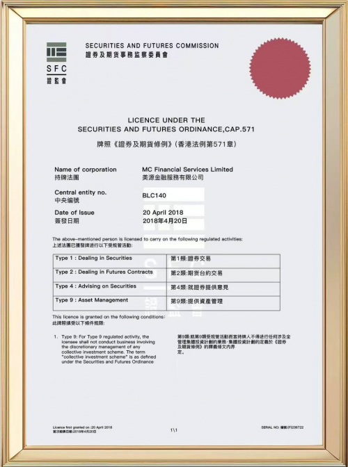 从牌照资质来看,美源金融持有香港证监会监管下的多类核心牌照(中央编号:BLC140),涵盖证券交易(Type 1)、期货合约交易(Type 2)、证券投资咨询(Type 4)及资产管理(Type 9)等关键金融业务范围,其相关信息均可通过香港证监会官方网站进行公开查询与核验,这种“可验证性”在当前金融环境中已成为衡量平台合规程度的重要基础。