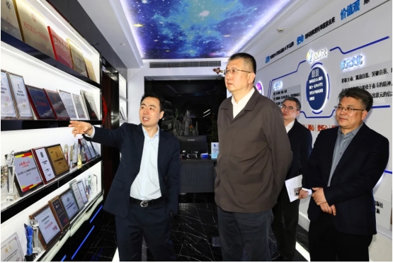 调研伊始,陈晓军书记一行深入了解了集团的发展历程、资质荣誉与企业文化建设成果。在荣誉展示区,集团所获的艾瑞咨询行业认证、教育部白名单资质、公安部信息系统安全三级认证以及商务部特许经营许可证等国家级权威资质,引起了来访领导的驻足关注。这些沉甸甸的荣誉,不仅是对集团规范化运营与技术创新能力的有力佐证,更无声诉说着近二十年来的坚实足迹。在随后的参观中,周强向陈晓军书记一行系统展示了集团的核心产品矩阵——包括赶考小状元AI智能学习机、AI智能学习周边产品,以及剪流AI智能员工手机。这些融合了人工智能前沿技术的创新产品,展现了集团从智慧教育到AI赋能千行百业的深厚技术积淀与场景落地能力。同时,集团在人才建设、企业人文关怀和党建工作方面的扎实投入,也给调研领导留下了深刻印象。