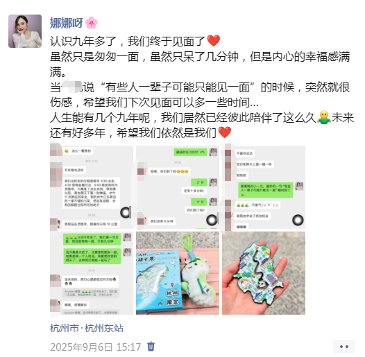 九年时光,肌肤变得细腻紧致,整个人也愈发从容自信。这份信任的深化,在一个细节中得以体现:2025年9月,娜娜老师在浙江中医药大学研学结束返程时,正在杭州工作的这位VIP会员,特意驱车一个多小时赶到车站,只为见她一面。
