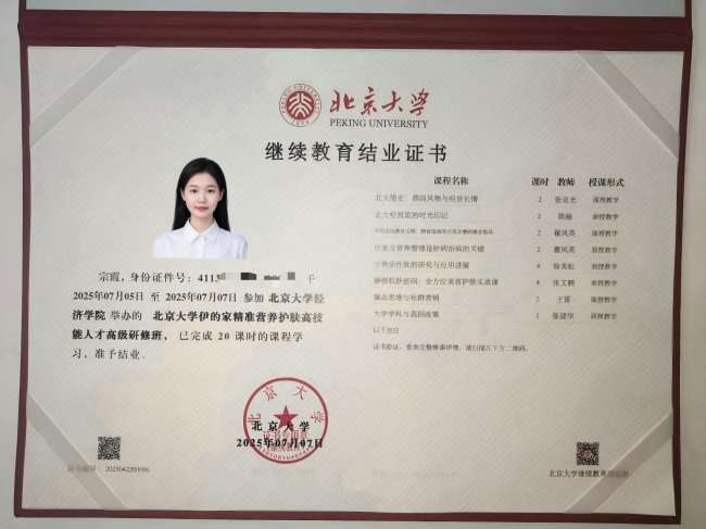 为了持续提升专业能力,宗霞定期参加行业培训与学术交流。她曾在北京大学经济学院举办的精准营养护肤高技能人才高级研修班完成系统学习,不断吸收前沿知识,完善自己的知识体系。她坚信,只有保持学习的状态,才能为VIP提供更科学、更有效的护理方案。宗霞表示,未来将继续深耕精准护肤领域,推动女性健康管理从单点产品思维向系统结构优化转型,让更多女性收获健康与自信。