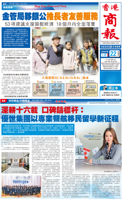 早在 2024 年,优世出国集团便已首次登载《香港商报》,两次获权威媒体报道,既是对优世专业服务的高度肯定,也是对其发展成果的集中展示与表彰。