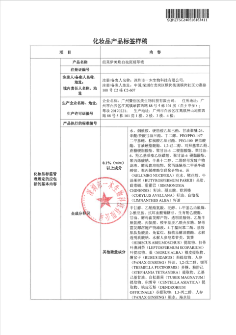 纽莱伊美严格遵守《化妆品监督管理条例》《广告法》等法律法规,全线产品资质齐全、全程可溯: