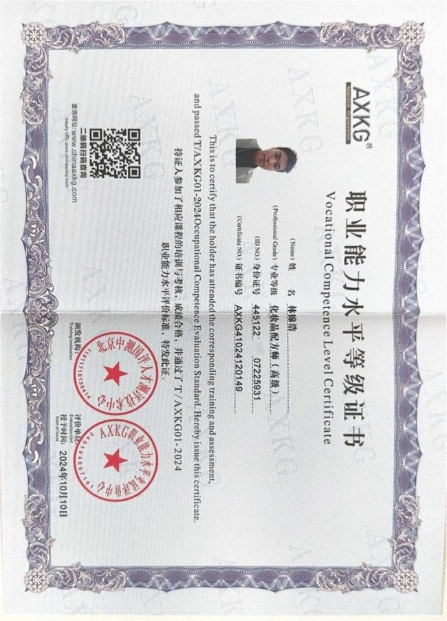 林锦浩老师拥有化妆品配方师(高级)和美容师四级双重专业资质。可能有朋友会问:这些证书有什么用?简单说,配方师证书说明他懂产品成分、能判断什么适合你;美容师证书说明他懂护理手法、能给你专业指导。两个证书加在一起,就像给护肤上了双保险。而且这些可不是花钱就能买的,都是真刀真枪考出来的。十年的专业积累,让林老师在业内积累了良好的口碑,很多VIP都是老客户介绍来的。
