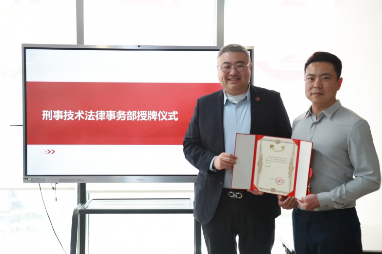 讲座正式开始前,举行了“刑事技术法律事务部授牌仪式”。北京市京师(大连)律师事务所主任毛震宇为谢剑彬律师颁发聘书,正式聘任谢剑彬律师担任刑事技术法律事务部主任。毛主任对刑事技术法律事务部的成立表示祝贺,期待谢剑彬律师带领团队为律所专业化建设注入技术动能。