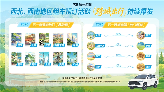 随着“五一”小长假临近,出行市场热度持续攀升。延续清明假期的火热势头,五一假期租车市场正在进入集中预订阶段。来自神州租车的2026五一租车自驾预测数据显示,截至目前,五一假期整体预订量同比增长超75%,多个节假日连续高增长的态势正在延续。