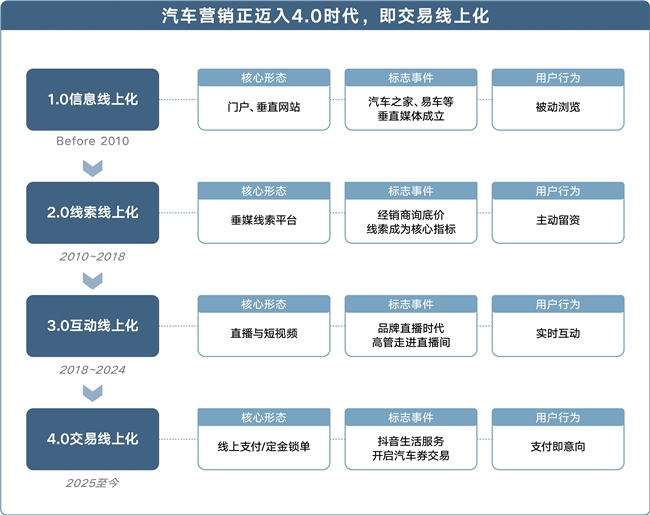 2025年,随着抖音生活服务推出汽车抵扣券这一“先买券、再核销”模式,汽车线上营销正式进入“交易线上化”阶段。消费者可通过线上平台完成支付定金、锁定权益、预约提车,走完线上买车全流程,让“支付”成为线上买车的最终一环。
