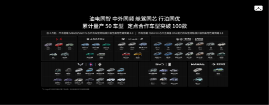 卓驭的乘用车板块,累计量产车型超过50款,定点车型突破130款。这并不是靠一两款爆款车型凑出来的数据,而是覆盖了从几万元经济车型到百万级豪华品牌,从燃油车到电动车,从自主品牌到合资企业的全矩阵布局。用卓驭自己的话概括:“油电同智、中外同频、舱驾同芯、行泊同优”——每一组“同”字的背后,都是对模型通用性的极致考验。