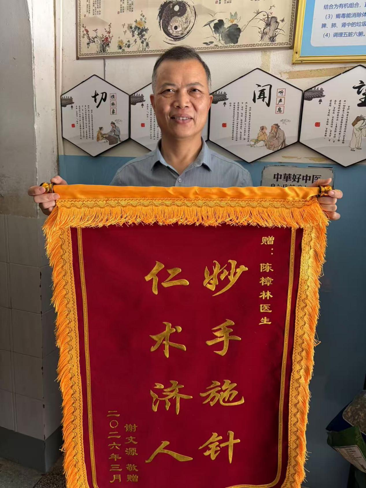 除深耕临床诊疗外,陈樟林心怀医者大爱,暖心普惠困难乡邻。针对低保家庭、重病术后等经济困难患者,他常年主动减免诊疗费用,曾为脑瘤术后面瘫患者免除千余元针灸治疗费,为低保肠癌患者补贴医药费用,以切实举措减轻基层群众就医负担,有效助力乡村防止因病致贫、因病返贫。